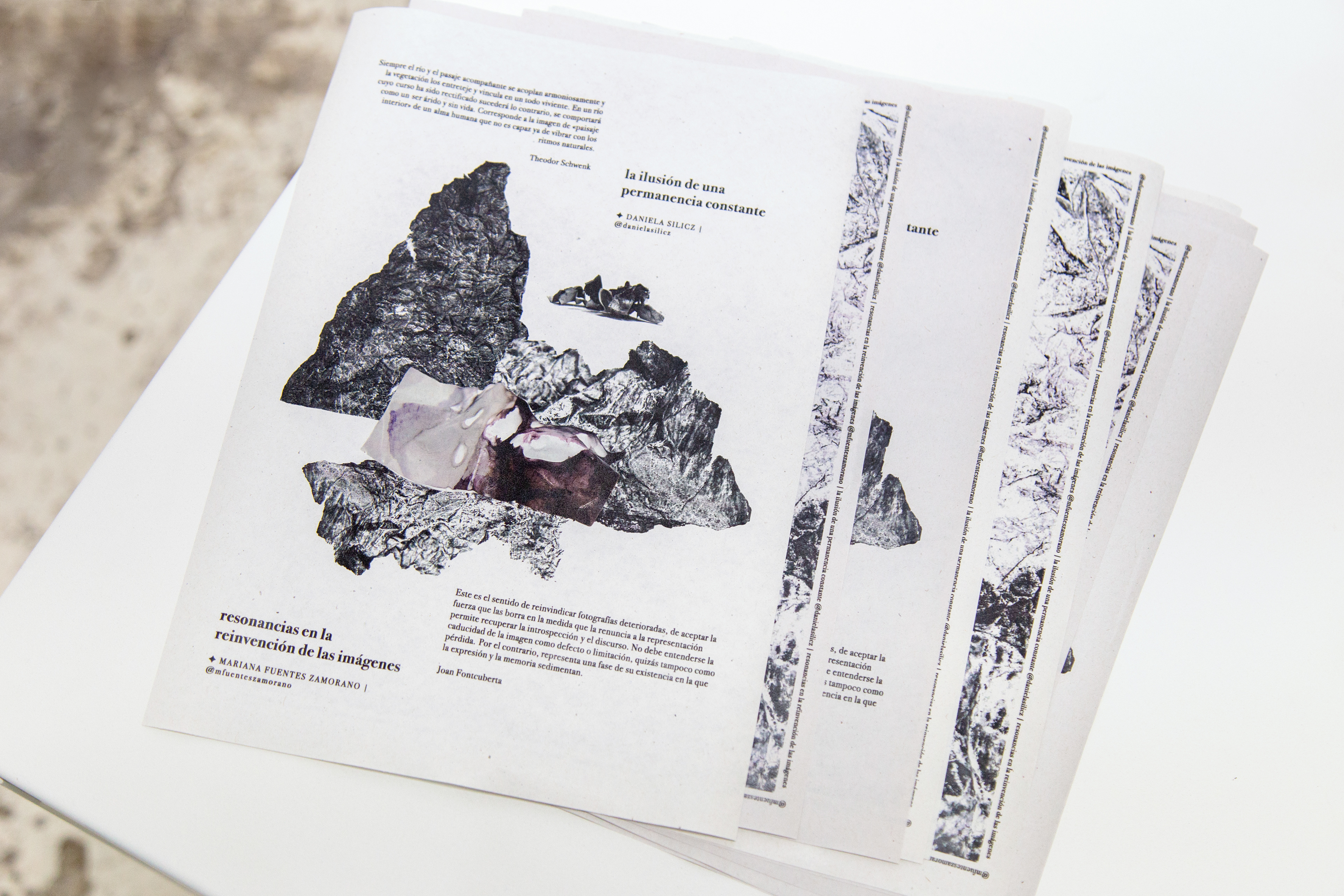 Resonancias en la reinvención de las imágenes (Mariana Fuentes Zamorano) ft La ilusión de una permanencia constante (Daniela Silicz). Proyecto de dialogo y exploración que invita a la reflexión sobre los procesos fotográficos en dialogo con el territorio y el impacto ambiental. Este trabajo fue desarrollado durante 40 días realizando exploraciones, diálogos, lecturas de textos e investigaciones matéricas en modalidad Residencia. Los resultados fueron exhibidos en el marco de La Gran Paternal 12 (Noviembre 2023) en Taller Paz Soldán, taller en el cual sucedió esta breve residencia de investigación y exploración.